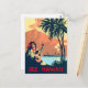 Hawaii tropic beach, woman playing guitar on coast postcard