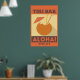 A fun retro poster design for a Hawaiian tiki bar with a coconut umbrella drink between the text Tiki Bar Aloha and Open 24/7.