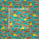 Colourful and fun bright blue fabric, printed with a pattern of Hawaiian beach names on signposts. Plus yellow Hibiscus flowers and tropical palm leaves.
