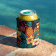 Hawaiian blossom bright tropical floral and pineapple pattern Can Coolers in pink, yellow, orange, green colours.