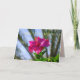 This card featuring a hot pink hibiscus is perfect to personalise for many occasions. In the background are the fronds of a traveller's palm. On the back of the card is another beautiful pink hibiscus.