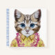 This design features a portrait of cat in a summer shirt and Hawaiian lei.