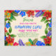 Hawaiian luau party invitation postcards with hibiscus flowers. Dark blue with colorful printed lines of text which make it easy to personalize for any type of tropical celebration, in the office or at home. The postcard wording is for a Christmas office party, with blue, green and pink text to match the surrounding border of tropical flowers and leaves. The back of the card is solid aqua blue with no text.