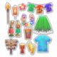 A collection of hawaiin luau themed tropical summer stickers. Including tiki torch, hawaiian shirts, flip flops, hibiscus lei and more.