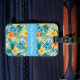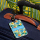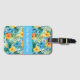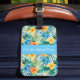 Custom luggage tag shown with a very tropical Hawaiian print with text.