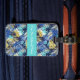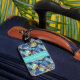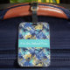 Custom luggage tag shown with a very tropical Hawaiian print with text.