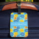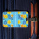Custom luggage tag is shown with a very tropical Hawaiian print with text.