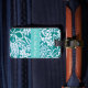 Custom luggage tag shown with a cute teal coloured hawaiian print with text. Customise this tag or buy as is.