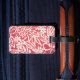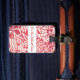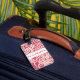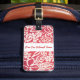 Custom luggage tag shown with a cute red coloured hawaiian print with text. Customise this tag or buy as is.