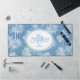 Bring tropical vibes to your home or office with this classic Hawaiian-inspired desk mat design. Featuring lush white palm trees silhouetted against a summery background in shades of blue, this pattern captures the timeless beauty of island life. This versatile design adds a cheerful touch of the tropics to any room. Customise the pattern size and personalise text to make it uniquely yours. Search ID1093 to see other products with this design.