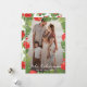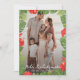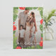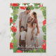 Beautiful floral photo Mele Kalikimaka card featuring a photo inside a tropical frame of red hibiscus and tropical leaves on the front and a botanical pattern at the back.