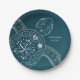 Hawaiian Sea Turtle White on Teal Beach Wedding Paper Plate