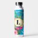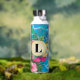 Your Tropical Oasis: Monogram Water Bottle - This vibrant tropical design is your personal escape, no matter the temperature! Featuring a dazzling mix of hibiscus, plumeria (frangipani), and butterflies, it keeps your favourite hot drinks steaming or your cold beverages refreshingly chilled all day long. Lush palm leaves frame a stunning gold wreath accented with pineapples, adding a touch of island luxury. Personalise it with your monogram initial for a unique statement piece!