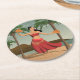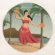 Hawaiian Vintage Hula Girl Distressed Postcard Round Paper Coaster