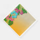 The Hawaiian Luau Paper Napkins will be the perfect addition for your every day meal, or use them for Hawaiian and tropical themed parties! The design features a background of sandy beige blended into a tropical summery orange-yellow, along with five Hawaiian hibiscus on the side in fuchsia and turquoise, along with green palm fronds. Customise the design as needed for your special occasion! Be sure to check out the matching paper plates and party invitations!