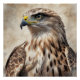 A Hawk in a detailed watercolor with expressive eyes is portrayed against a soft, blurred background. The natural colours enhance the lifelike appearance.
