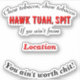 Think your home town, state, or just general location is the best around? Here is a sticker to show off your support with the added addition of the popular redneck bedroom loogie reference of the hawk tuah girl.