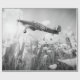 Hawker Hurricane WW2 black and white fighter plane side view low flying over poppies with canopy open