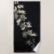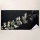 Hawthorn Flowers - A single Hawthorn branch with white spring flowers set against a stark black background.