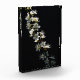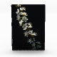 Hawthorn Flowers - A single Hawthorn branch with white spring flowers set against a stark black background.