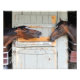 Two gorgeous bay fillies, Fenwick Hall and Lakeside Sunset of the Bruce Brown stables, sticking their heads out at each other from their barn doors. Who knows what was on their minds? It was fun to watch as I got closer. Fleetphoto