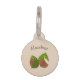 A pet tag for your dog or cat with hazelnuts and its green leaves on a light brown background. You can personalise it with a name and a phone number.