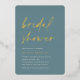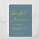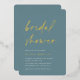 Invite guests to celebrate the bride to be with these modern and minimal bridal shower invitations with stunning rose gold foil accents. Simple design features "bridal shower" in casual handwritten script on a dusty turquoise teal background, with your event details aligned at the lower left in modern off white lettering.