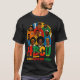 I give wanted to give this a 4 instead of a 5 because these Basic DARK T0shirts run unexpectedly SLIM or Narrow. Which is great if you do not have a potbelly, but I have a paunch. It isn't the shirt's fault that I've got a beer belly. The design and shirt itself is a quality cotton shirt. The color is more of a deep purple, but still a very pretty color. The Basic DARK T-shirts run a bit SLIMMER than the Basic Ts. The neck is a fraction narrower (or seems to be narrower) also. I'm a paunchy middle-aged woman and my neck is 12 inches (31cm) thick and the neckline fell about the same as in the photo of the man, and I had the desire to tug it a bit. So if you're a thick necked man or like loose shirts, be aware these are slimmer shirts. Once I get rid of my lockdown paunch it'll look great. The shirt washed well in cold water with no apparent bleeding. We don't have a dryer, so it hung dry. Did not shrink. Love the colors and the design. The design looks smaller on my shirt than it does on the model on-line. But still, it looks good on the shirt. The printing looks as it does on the model, just the size seems fractionally smaller. Washed garment in cold water, hung dry and design appeared unaffected.
