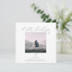Modern in square format for a contemporary touch to invite guests to save your date, with elegant grey calligraphy He Asked ... She Said Yes above your photo and the rest of the text you can easily personalise. Choose your favourite romantic photo of you both and replace the sample photo in the template placeholder with it. You can also change the white background on the front, and grey on the back, via the Customise Further option if you wish, as well as the text colour to better match your chosen photo.
