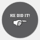 He Did It Funny Joke Saying Slogan Humor Classic Round Sticker