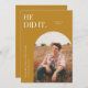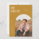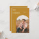 Modern graduation announcement card featuring a yellow arch frame for your photo. The text says "HE DID IT."