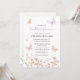 Elegant floral bridal shower invitation featuring watercolor wildflowers and pastel butterflies on a white background. The design is bohemian-inspired, with a whimsical and romantic feel. Use the design tools to customise the text, font and colours. Available as download.