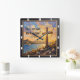 This vibrant wall clock captures the hopeful scene of a wooden cross standing silhouetted against a glorious sunrise over a tranquil lake and distant hills. The powerful message, "He is not here, He has risen! - Luke 24:6," is prominently displayed. With its textured, painterly style, this timepiece serves as a daily reminder of the resurrection's joy and the dawn of new hope.