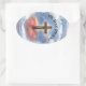 He Has Risen Rugged Cross With Clouds Oval Sticker