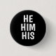 he/him/his pronouns black background 3 cm round badge