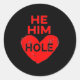 He Him Hole Heart Funny Valentines Day Classic Round Sticker