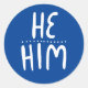 HE / HIM Pronouns Blue Handlettering Set of Classic Round Sticker