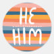 HE/HIM Pronouns Stripes Handlettering Sheet of Classic Round Sticker
