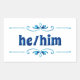 He Him in Fancy Blue Filigree stickers. Stick this sticker anywhere you want to state your pronouns.
