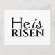 He Is Risen Christian Quote Saying Black White Easter Postcard. Modern bold black script typography phrase on white. Religious Easter saying greeting proclaiming Jesus Christ is risen. He is risen he is risen indeed. Religion inspirational quote. Holiday keepsake. Step by Step Inspiration Series available exclusively on Zazzle at zazzle.com/store/KrisHarty, designed by international designer, Kris Harty. © 2020 Kris Harty Step By Step Inspirational Designs