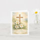 This card features a beautiful illustration of a wooden cross and Easter lilies, with the text He is Risen, by digital artist Jayne Wilson.