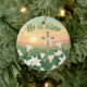 Celebrate the true meaning of Easter with this beautiful keepsake ornament that features a beautiful watercolor resurrection morning sunrise, A cross draped with a white cloth and lily of the valley flowers. There is also text that reads, " He is risen." All text on the back can be edited and personalized with your own message or omitted.