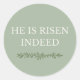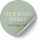 Celebrate the resurrection of Jesus with this “He is Risen Indeed” sticker. Perfect for journals, planners, laptops, or Bibles. Soft muted green background with minimalist typography makes it a meaningful gift for Easter, church events, or daily faith inspiration.