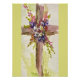 Watercolor painting depicting a decorated cross to celebrate Easter. He is Risen . Notecard, Easter card, Bookmarks and more.