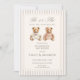 Ideal for neutral baby showers, classic teddy bear themes, or elegant gender reveal parties, this design blends vintage illustration style with gentle pastel tones. All text is fully customizable, allowing you to personalize names, dates, and event details to create a meaningful and memorable invitation.
