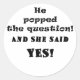 He Popped the Question and She said Yes Classic Round Sticker