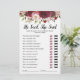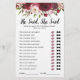 Make your bridal shower one to remember with this elegant, funny "he said, she said" bridal party game! Featuring gorgeous burgundy & blush watercolor florals, and text template which can easily be personalised.