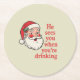 Bring nostalgic holiday charm to your party with this vintage-style Santa paper coaster design! Featuring a retro 1950s Santa illustration paired with the playful saying “He sees you when you’re drinking,” this design adds a touch of humor and classic Christmas flair to any gathering. Perfect for holiday bars, festive entertaining, gift baskets, or seasonal décor. Great for anyone who loves fun, cheeky, vintage-inspired Christmas designs.