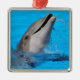 Head of bottlenose dolphin (Tursiops truncatus) with an open mouth in the blue water
