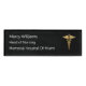Classy medical hospital staff name tag template designed with a gold coloured caduceus symbol you can use on our name tags or replace with your own company logo. Use these for your medical staff as budget friendly name tags you can customise online.